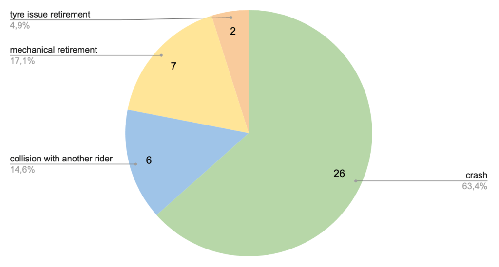 - collision with another rider : a DNF that was caused by a contact with another rider and that wouldn’t have happened if the bikes hadn’t touched,