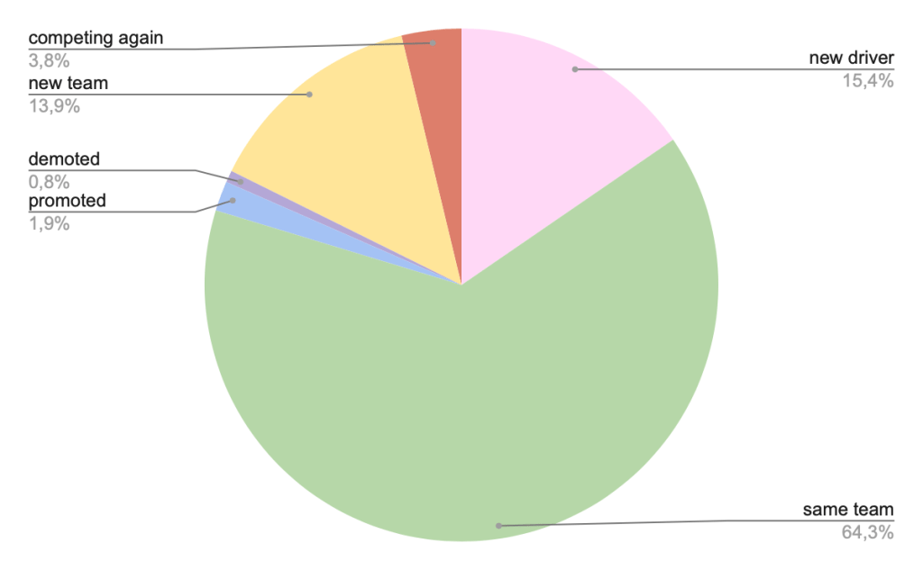 Repartition of drivers at the beginning of each season (in regard to who they were driving for at the beginning of the previous season) – Chart