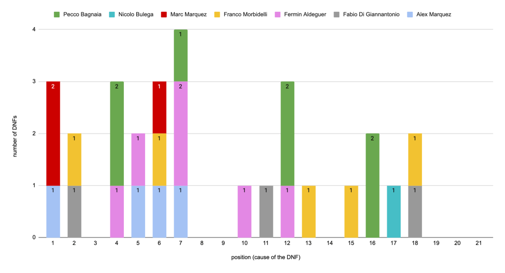 DNFs per position – Ducati riders